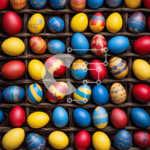 Intra Συλλεκτικό Ξύλινο Παζλ Plywood 4mm - Πολύχρωμα Πασχαλινά αυγά σε ένα καλάθι Σε Ξύλινο Κουτί - Διαστάσεις Puzzle: 10x10 cm – 25 κομμάτια