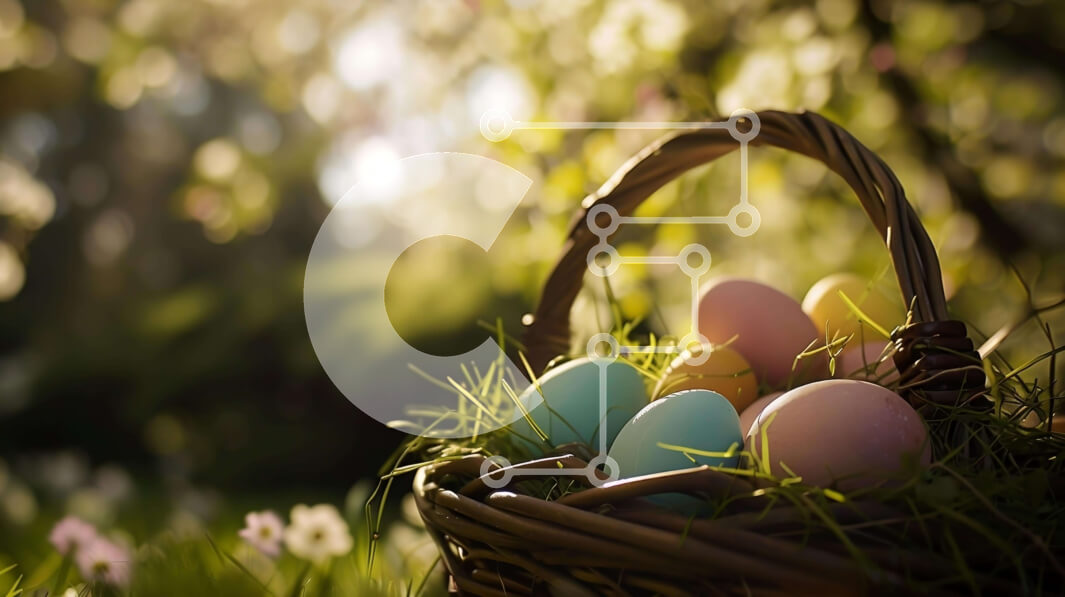 Intra Συλλεκτικό Ξύλινο Παζλ Plywood 4mm - Πολύχρωμα Πασχαλινά αυγά σε ένα καλάθι στο γρασίδι Σε Ξύλινο Κουτί - Διαστάσεις: 10x10 cm – 25 κομμάτια
