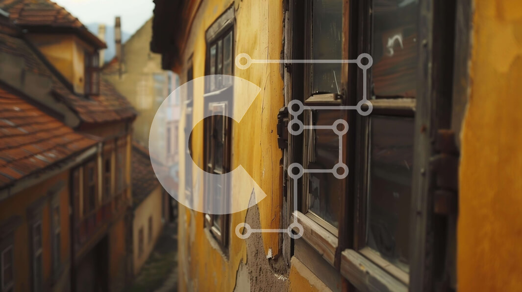 Intra Συλλεκτικό Ξύλινο Παζλ Plywood 4mm - Στενό δρομάκι σε μια παλιά πόλη με πολλά κτίρια και παράθυρα Σε Ξύλινο Κουτί - Διαστάσεις Puzzle: 10x10 cm – 25 κομμάτια