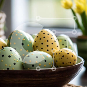 Intra Συλλεκτικό Ξύλινο Παζλ Plywood 4mm - Πολύχρωμα Πασχαλινά αυγά με ένα λαγουδάκι σε ένα λευκό μπολ Σε Ξύλινο Κουτί - Διαστάσεις: 10x10 cm – 25 κομμάτια