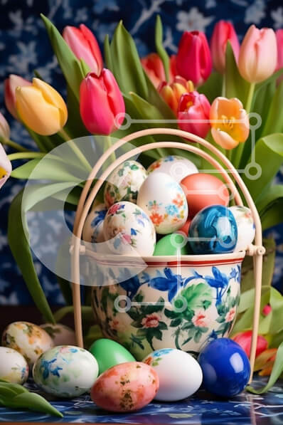 Intra Συλλεκτικό Ξύλινο Παζλ Plywood 4mm - Πολύχρωμα Πασχαλινά αυγά και τουλίπες σε ξύλινο μπολ Σε Ξύλινο Κουτί - Διαστάσεις: 10x10 cm – 25 κομμάτια