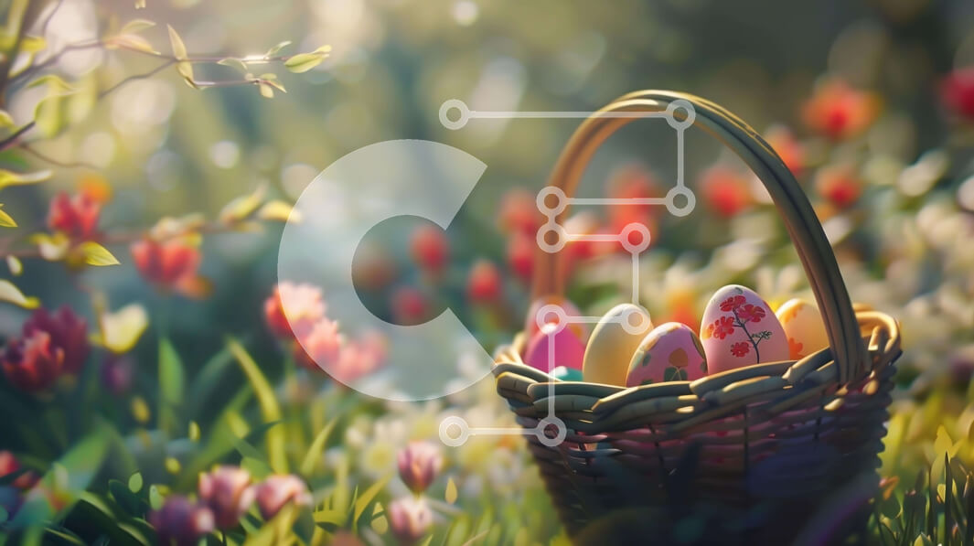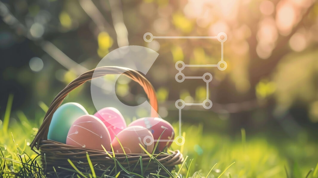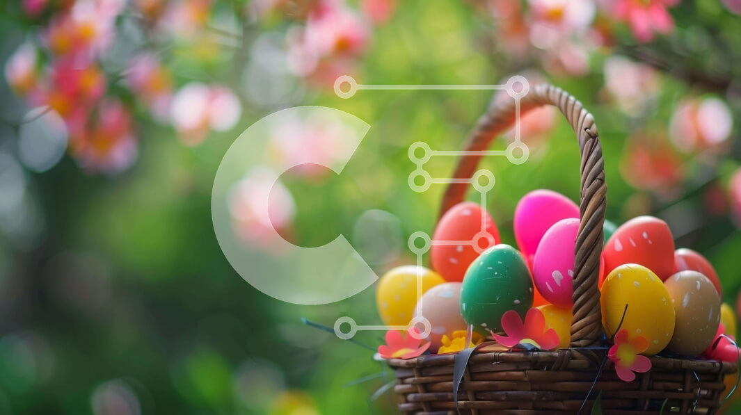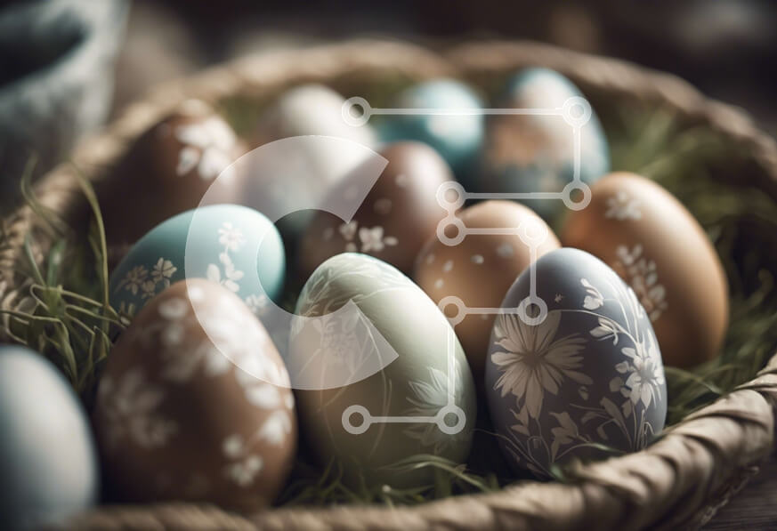 Intra Συλλεκτικό Ξύλινο Παζλ Plywood 4mm - Πολύχρωμα Πασχαλινά αυγά σε ένα διακοσμητικό καλάθι στο γρασίδι Σε Ξύλινο Κουτί - Διαστάσεις: 10x10 cm – 25 κομμάτια