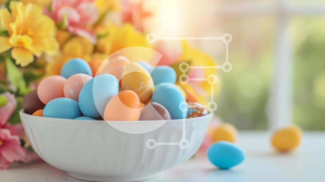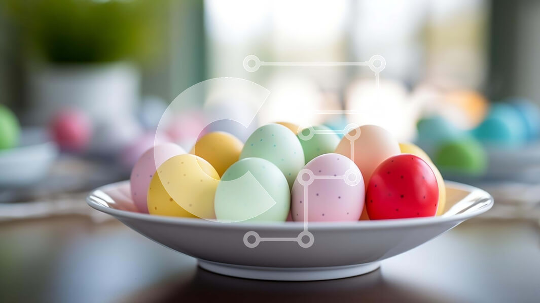 Intra Συλλεκτικό Ξύλινο Παζλ Plywood 4mm - Πολύχρωμα Πασχαλινά αυγά σε ένα άσπρο μπολ Σε Ξύλινο Κουτί - Διαστάσεις: 10x10 cm – 25 κομμάτια