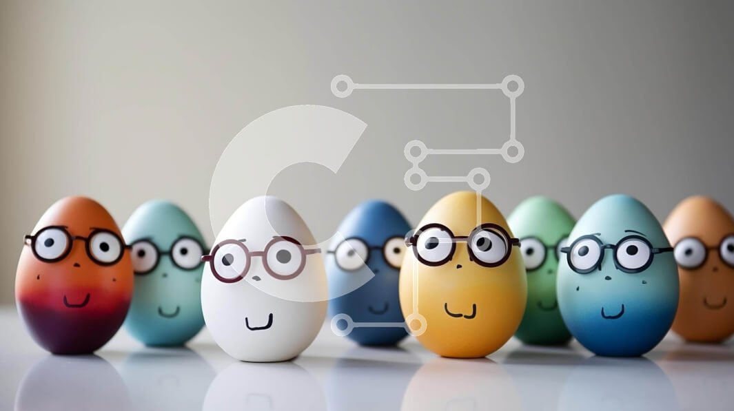 Intra Συλλεκτικό Ξύλινο Παζλ Plywood 4mm - Πολύχρωμα Πασχαλινά αυγά με βαμμένα πρόσωπα και γυαλιά Σε Ξύλινο Κουτί - Διαστάσεις: 10x10 cm – 25 κομμάτια