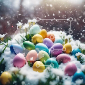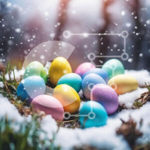 Intra Συλλεκτικό Ξύλινο Παζλ Plywood 4mm - Πολύχρωμα Πασχαλινά αυγά στο χιόνι Σε Ξύλινο Κουτί - Διαστάσεις: 10x10 cm – 25 κομμάτια