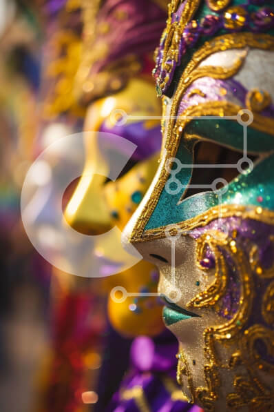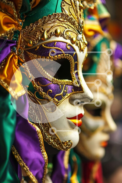 Intra Συλλεκτικό Ξύλινο Παζλ Plywood 4mm - Πολύχρωμες αποκριάτικες μάσκες σε μωβ και πράσινο χρώμα Σε Ξύλινο Κουτί - Διαστάσεις Puzzle: 10x10 cm – 25 κομμάτια