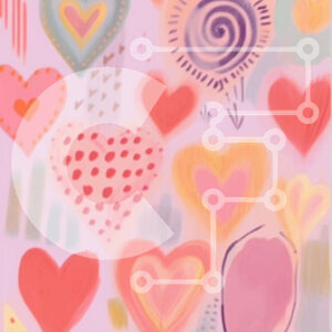 Intra Συλλεκτικό Ξύλινο Παζλ Plywood 4mm - Πολύχρωμες καρδιές και αφηρημένα σχήματα σε ροζ φόντο Σε Ξύλινο Κουτί - Διαστάσεις Puzzle: 10x10 cm – 25 κομμάτια