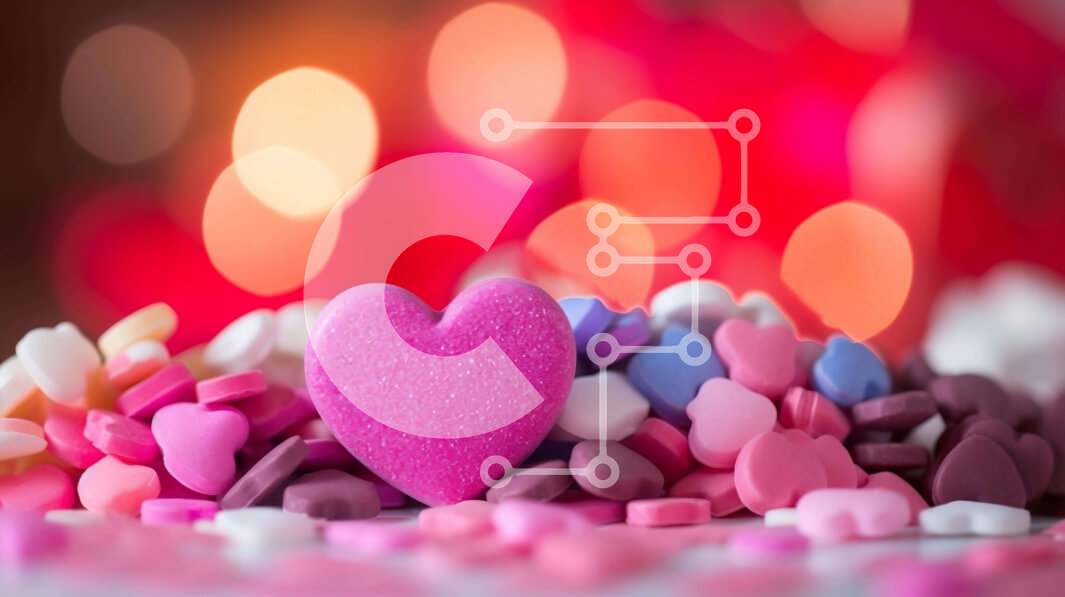 Intra Συλλεκτικό Ξύλινο Παζλ Plywood 4mm - Πολύχρωμες καρδιές και καραμέλα σε σχήμα καρδιάς για την ημέρα του Αγίου Βαλεντίνου Σε Ξύλινο Κουτί - Διαστάσεις Puzzle: 10x10 cm – 25 κομμάτια