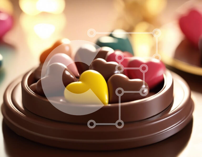 Intra Συλλεκτικό Ξύλινο Παζλ Plywood 4mm - Πολύχρωμες καραμέλες σοκολάτας σε σχήμα καρδιάς σε μπολ Σε Ξύλινο Κουτί - Διαστάσεις: 10x10 cm – 25 κομμάτια