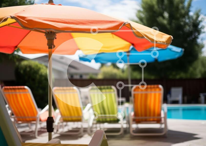 Intra Συλλεκτικό Ξύλινο Παζλ Plywood 4mm - Πολύχρωμες ξαπλώστρες και ομπρέλες δίπλα στην πισίνα Σε Ξύλινο Κουτί - Διαστάσεις Puzzle: 10x10 cm – 25 κομμάτια