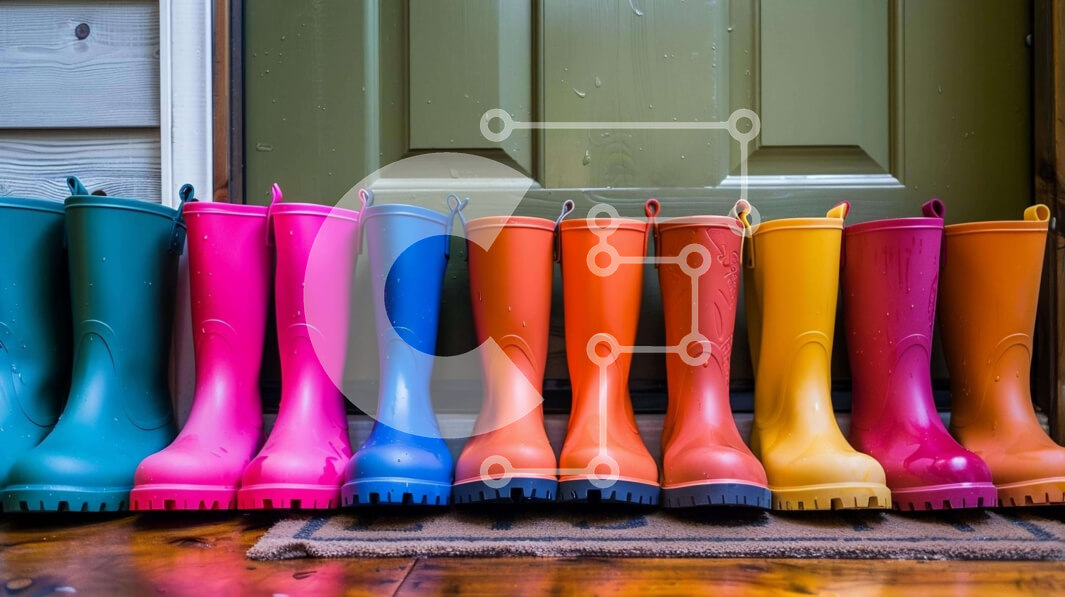 Intra Συλλεκτικό Ξύλινο Παζλ Plywood 4mm - Πολύχρωμες μπότες βροχής μπροστά από την πόρτα Σε Ξύλινο Κουτί - Διαστάσεις Puzzle: 10x10 cm – 25 κομμάτια