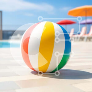 Intra Συλλεκτικό Ξύλινο Παζλ Plywood 4mm - Πολύχρωμες ξαπλώστρες με μπάλα και ξαπλώστρες δίπλα στην εξωτερική πισίνα Σε Ξύλινο Κουτί - Διαστάσεις: 10x10 cm – 25 κομμάτια