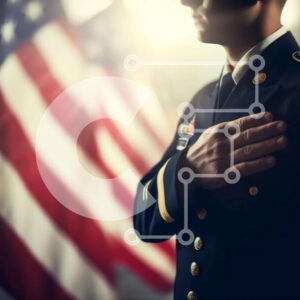 Intra Συλλεκτικό Ξύλινο Παζλ Plywood 4mm - Στρατιωτικό μέλος με στολή που στέκεται μπροστά από αμερικανικές σημαίες Σε Ξύλινο Κουτί - Διαστάσεις Puzzle: 10x10 cm – 25 κομμάτια