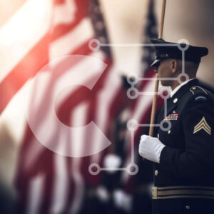 Intra Συλλεκτικό Ξύλινο Παζλ Plywood 4mm - Στρατιωτικό προσωπικό σε ομοιόμορφη στάση με αμερικανικές σημαίες Σε Ξύλινο Κουτί - Διαστάσεις Puzzle: 10x10 cm – 25 κομμάτια