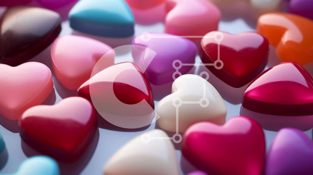 Intra Συλλεκτικό Ξύλινο Παζλ Plywood 4mm - Πολύχρωμες πλαστικές χάντρες σε σχήμα καρδιάς για στολίδια του Αγίου Βαλεντίνου Σε Ξύλινο Κουτί - Διαστάσεις Puzzle: 10x10 cm – 25 κομμάτια