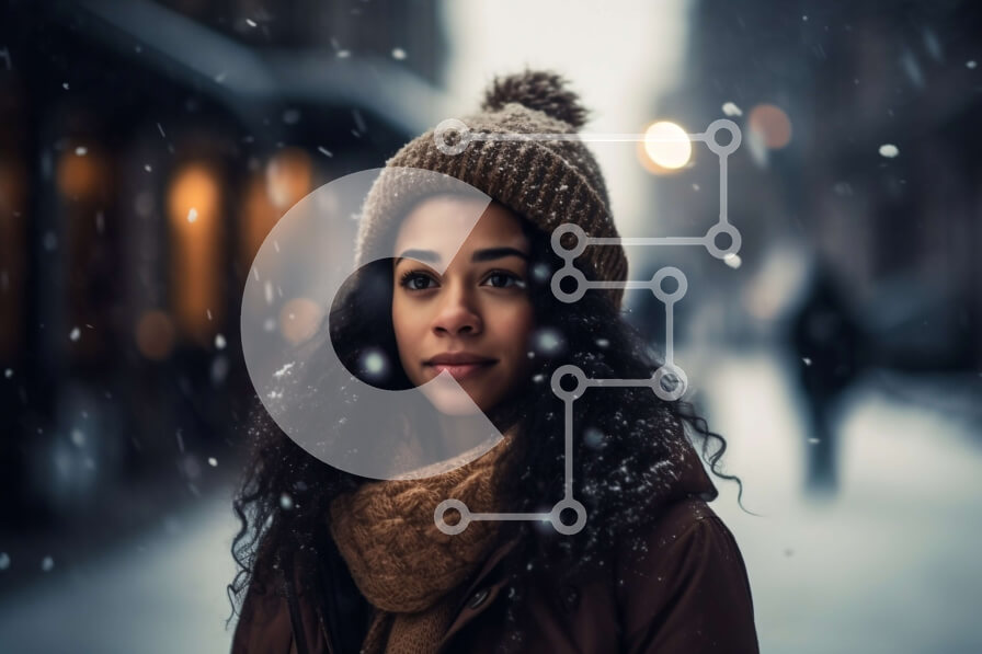 Intra Συλλεκτικό Ξύλινο Παζλ Plywood 4mm - Πορτρέτο μιας νεαρής γυναίκας με χειμερινή ένδυση σε μια χιονισμένη οδό Σε Ξύλινο Κουτί - Διαστάσεις Puzzle: 10x10 cm – 25 κομμάτια
