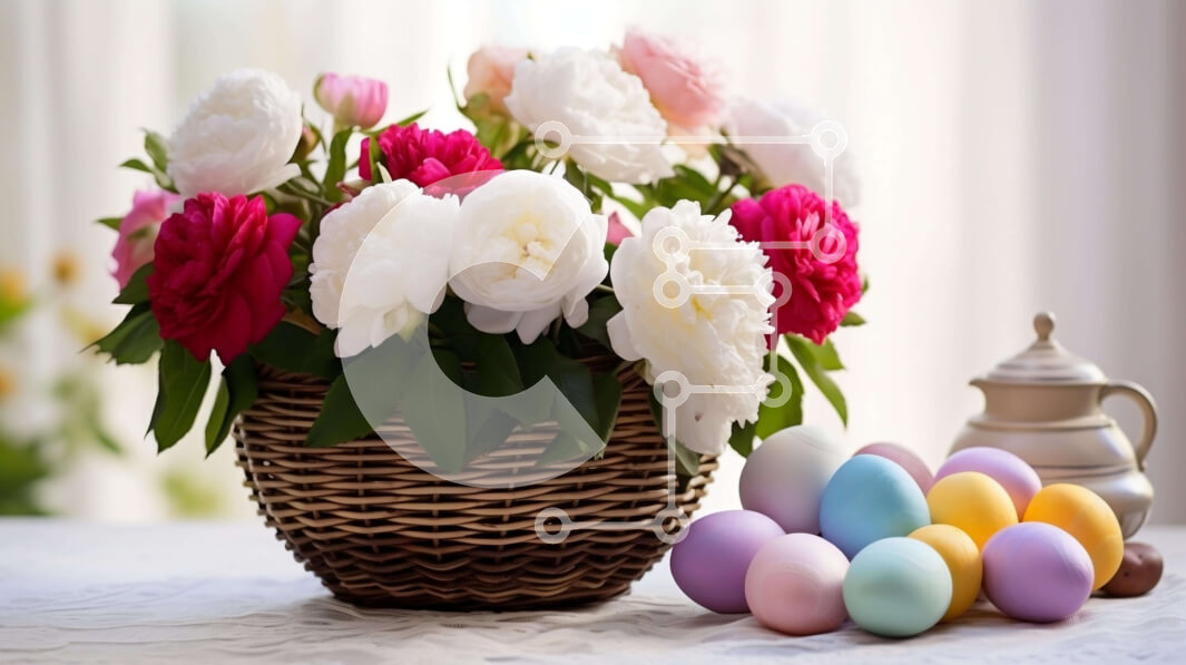 Intra Συλλεκτικό Ξύλινο Παζλ Plywood 4mm - Πολύχρωμο Πασχαλινό καλάθι με αυγά και λουλούδια Σε Ξύλινο Κουτί - Διαστάσεις: 10x10 cm – 25 κομμάτια