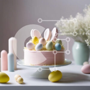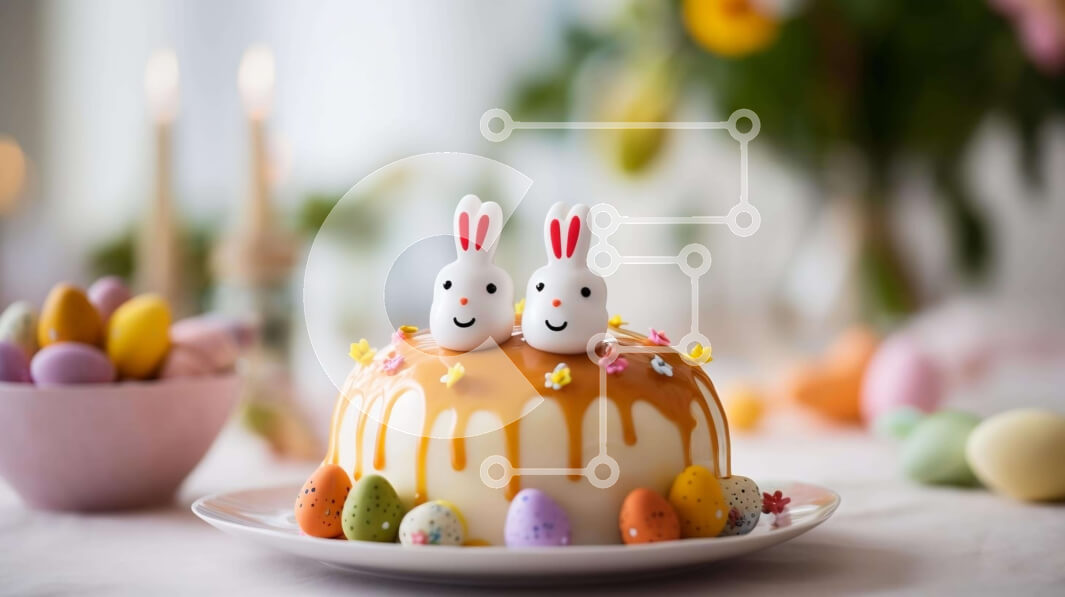 Intra Συλλεκτικό Ξύλινο Παζλ Plywood 4mm - Πολύχρωμο Πασχαλινό κέικ με κουνελάκια και αυγά Σε Ξύλινο Κουτί - Διαστάσεις: 10x10 cm – 25 κομμάτια
