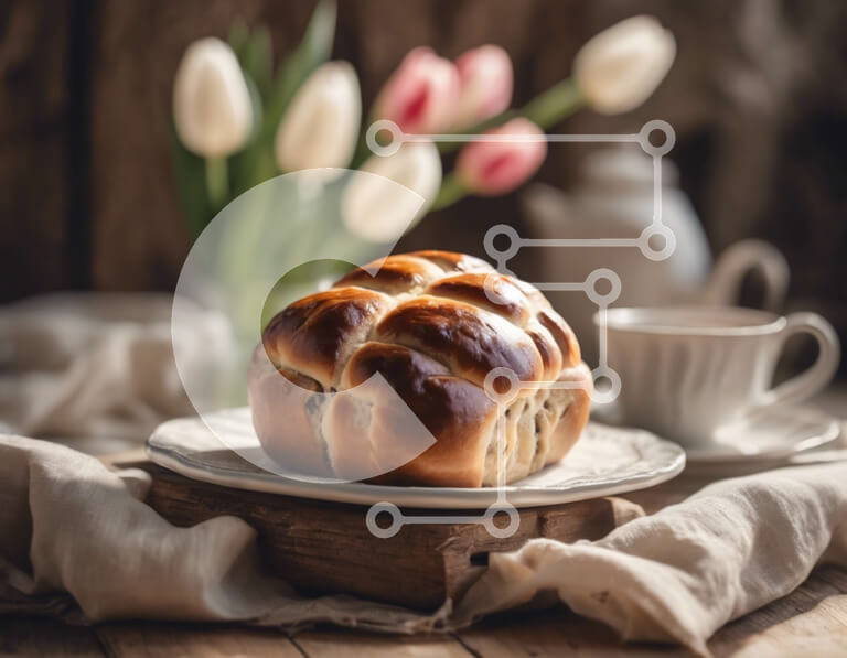 Intra Συλλεκτικό Ξύλινο Παζλ Plywood 4mm - Πολύχρωμο Πασχαλινό κουλούρι και τουλίπες την άνοιξη Σε Ξύλινο Κουτί - Διαστάσεις: 10x10 cm – 25 κομμάτια