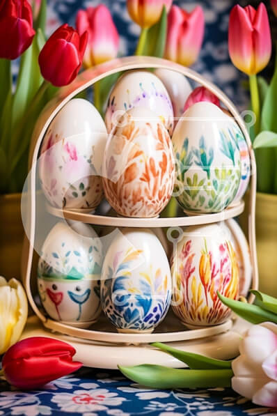 Intra Συλλεκτικό Ξύλινο Παζλ Plywood 4mm - Πολύχρωμο Πασχαλινό καλάθι με αυγά και τουλίπες Σε Ξύλινο Κουτί - Διαστάσεις Puzzle: 10x10 cm – 25 κομμάτια