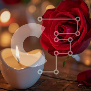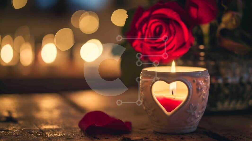 Intra Συλλεκτικό Ξύλινο Παζλ Plywood 4mm - Ρομαντικό κερί σε σχήμα καρδιάς με κόκκινο τριαντάφυλλο σε ξύλινο τραπέζι Σε Ξύλινο Κουτί - Διαστάσεις Puzzle: 10x10 cm – 25 κομμάτια