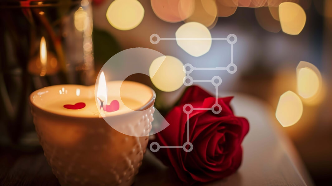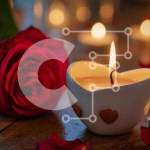 Intra Συλλεκτικό Ξύλινο Παζλ Plywood 4mm - Ρομαντικό κερί σε σχήμα καρδιάς που περιβάλλεται από κόκκινα τριαντάφυλλα και λουλούδια Σε Ξύλινο Κουτί - Διαστάσεις Puzzle: 10x10 cm – 25 κομμάτια