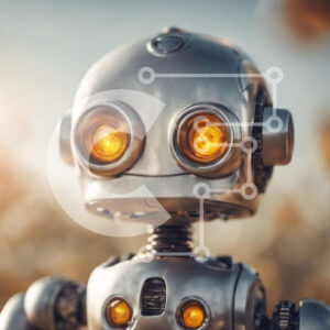 Intra Συλλεκτικό Ξύλινο Παζλ Plywood 4mm - Ρομπότ με λαμπερά μάτια και ακουστικά - εικονογράφηση τεχνητής νοημοσύνης Σε Ξύλινο Κουτί - Διαστάσεις Puzzle: 10x10 cm – 25 κομμάτια