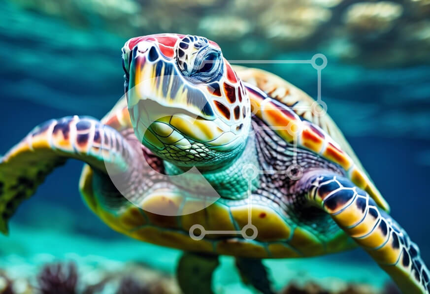 Intra Συλλεκτικό Ξύλινο Παζλ Plywood 4mm - Πολύχρωμη θαλάσσια χελώνα που κολυμπά σε καθαρά νερά Σε Ξύλινο Κουτί - Διαστάσεις: 10x10 cm – 25 κομμάτια