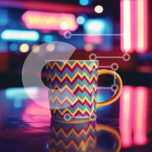Intra Συλλεκτικό Ξύλινο Παζλ Plywood 4mm - Πολύχρωμη κούπα καφέ ζιγκ-ζαγκ με φόντο νέον Σε Ξύλινο Κουτί - Διαστάσεις: 10x10 cm – 25 κομμάτια