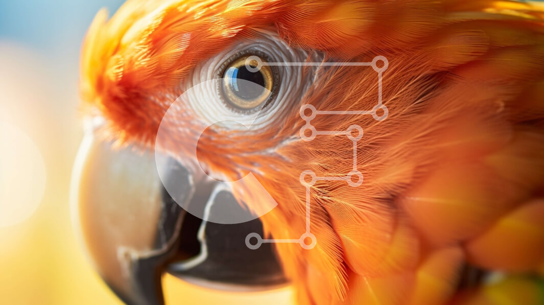 Intra Συλλεκτικό Ξύλινο Παζλ Plywood 4mm - Πολύχρωμη κινηματογράφηση σε πρώτο πλάνο ενός πορτοκαλιού παπαγάλου Σε Ξύλινο Κουτί - Διαστάσεις: 10x10 cm – 25 κομμάτια