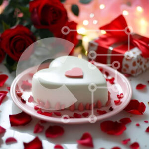 Intra Συλλεκτικό Ξύλινο Παζλ Plywood 4mm - Ρομαντικό κέικ σε σχήμα καρδιάς για την ημέρα του Αγίου Βαλεντίνου με κόκκινα τριαντάφυλλα και κομφετί Σε Ξύλινο Κουτί - Διαστάσεις: 10x10 cm – 25 κομμάτια