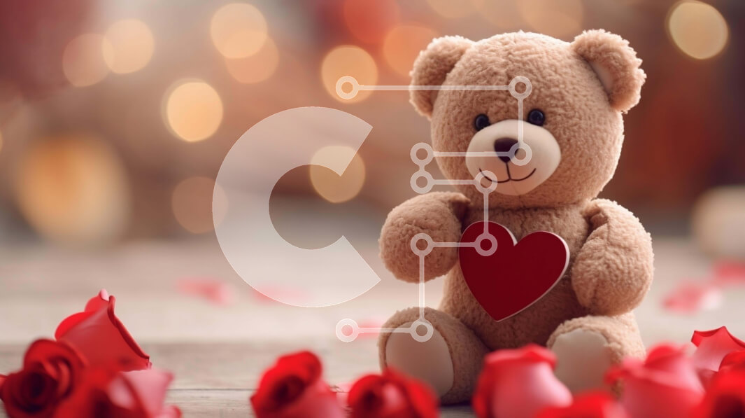 Intra Συλλεκτικό Ξύλινο Παζλ Plywood 4mm - Ρομαντικό καφέ αρκουδάκι με κόκκινα τριαντάφυλλα Σε Ξύλινο Κουτί - Διαστάσεις Puzzle: 10x10 cm – 25 κομμάτια