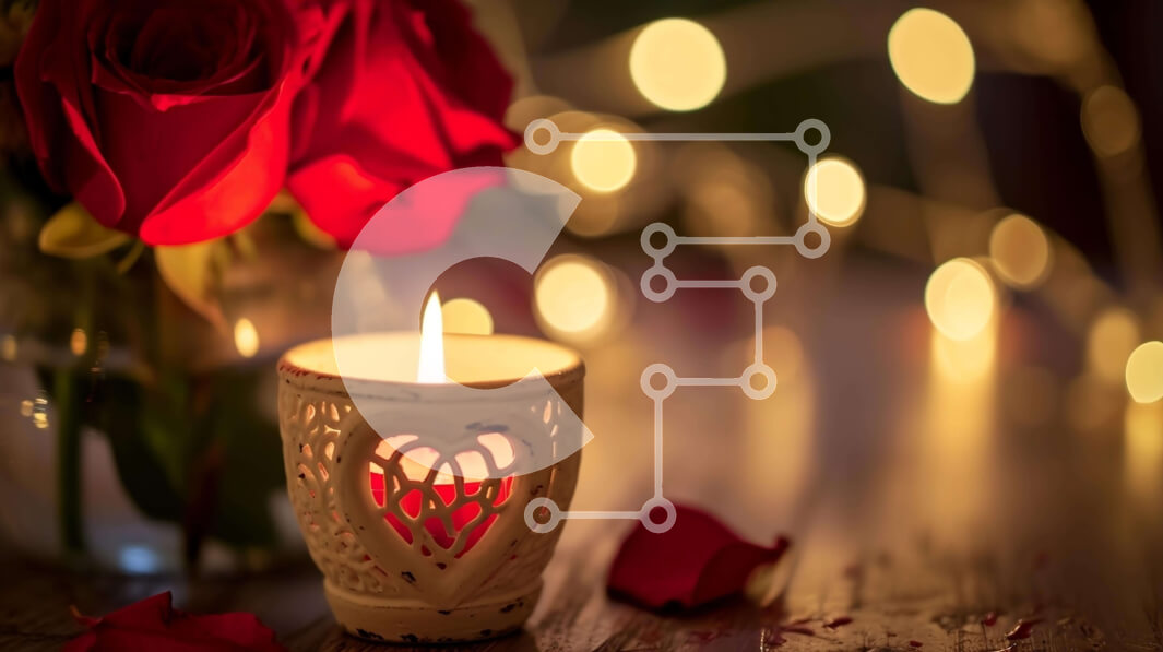 Intra Συλλεκτικό Ξύλινο Παζλ Plywood 4mm - Ρομαντικό κερί και κόκκινα τριαντάφυλλα σε ένα ξύλινο τραπέζι Σε Ξύλινο Κουτί - Διαστάσεις Puzzle: 10x10 cm – 25 κομμάτια