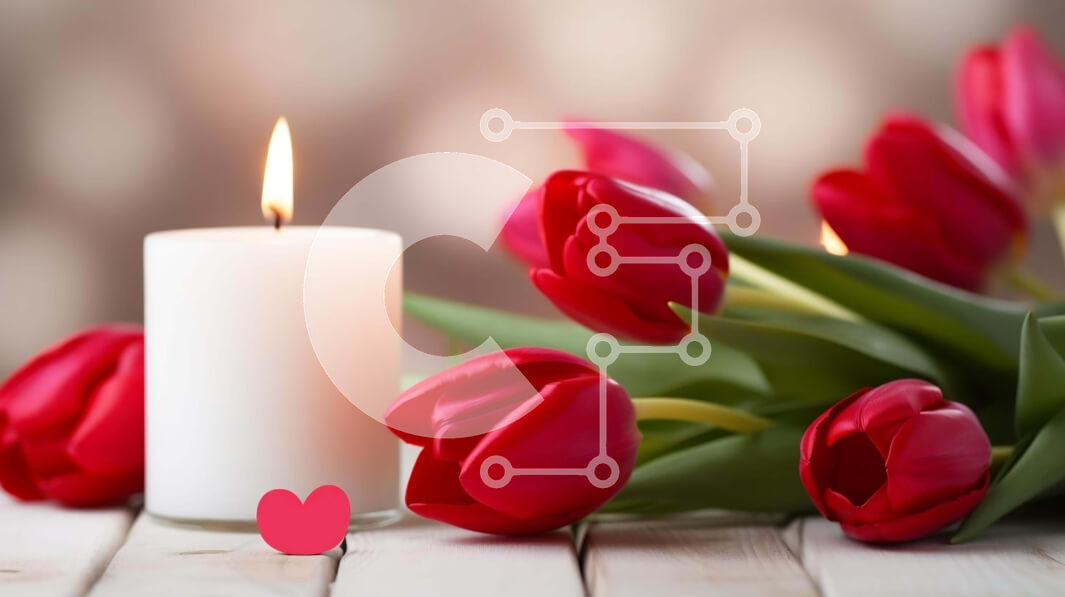 Intra Συλλεκτικό Ξύλινο Παζλ Plywood 4mm - Ρομαντικό κερί και κόκκινες τουλίπες σε ξύλινο τραπέζι Σε Ξύλινο Κουτί - Διαστάσεις: 10x10 cm – 25 κομμάτια
