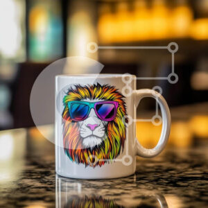 Intra Συλλεκτικό Ξύλινο Παζλ Plywood 4mm - Πολύχρωμη κούπα λιονταριού με γυαλιά ηλίου σε ξύλινη επιφάνεια Σε Ξύλινο Κουτί - Διαστάσεις: 10x10 cm – 25 κομμάτια
