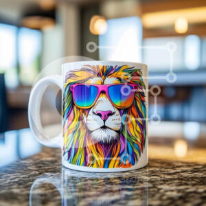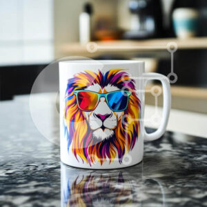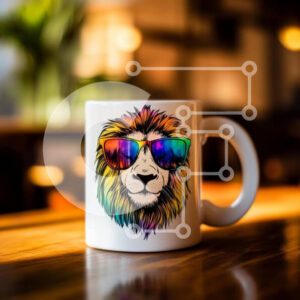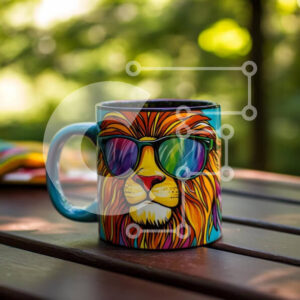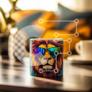 Intra Συλλεκτικό Ξύλινο Παζλ Plywood 4mm - Πολύχρωμη κούπα λιονταριού με γυαλιά ηλίου σε ξύλινο τραπέζι Σε Ξύλινο Κουτί - Διαστάσεις: 10x10 cm – 25 κομμάτια