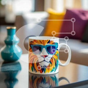 Intra Συλλεκτικό Ξύλινο Παζλ Plywood 4mm - Πολύχρωμη κούπα λιονταριού σε ένα μοντέρνο σαλόνι Σε Ξύλινο Κουτί - Διαστάσεις Puzzle: 10x10 cm – 25 κομμάτια