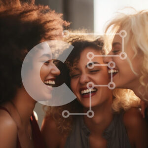 Intra Συλλεκτικό Ξύλινο Παζλ Plywood 4mm - Τρεις γυναίκες που γελούν μαζί Σε Ξύλινο Κουτί - Διαστάσεις Puzzle: 10x10 cm – 25 κομμάτια