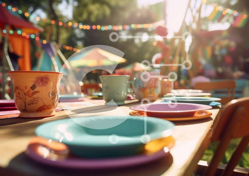 Intra Συλλεκτικό Ξύλινο Παζλ Plywood 4mm - Πολύχρωμο τραπέζι με πιάτα, κύπελλα και ασημικά Σε Ξύλινο Κουτί - Διαστάσεις Puzzle: 10x10 cm – 25 κομμάτια