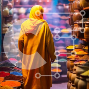 Intra Συλλεκτικό Ξύλινο Παζλ Plywood 4mm - Πολύχρωμος διάδρομος αγοράς με γυναίκα με κίτρινο παλτό Σε Ξύλινο Κουτί - Διαστάσεις Puzzle: 10x10 cm – 25 κομμάτια