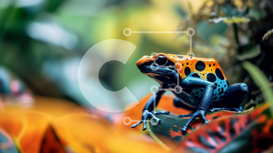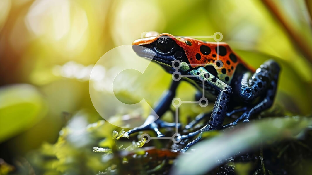 Intra Συλλεκτικό Ξύλινο Παζλ Plywood 4mm - Πολύχρωμος βάτραχος σε ποώδη πράσινο φόντο στο τροπικό δάσος του Αμαζονίου Σε Ξύλινο Κουτί - Διαστάσεις: 10x10 cm – 25 κομμάτια