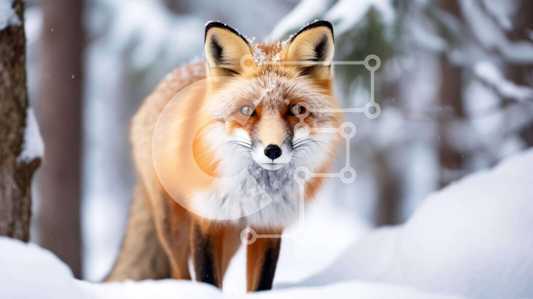 Intra Συλλεκτικό Ξύλινο Παζλ Plywood 4mm - Πορτοκαλί αλεπού στη χιονώδη δασώδη περιοχή Σε Ξύλινο Κουτί - Διαστάσεις: 10x10 cm – 25 κομμάτια