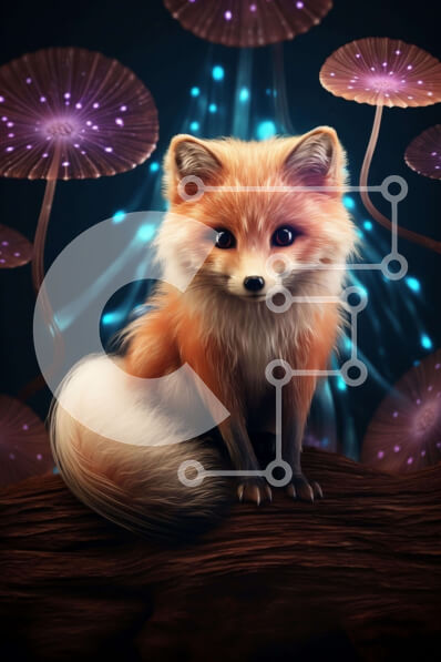 Intra Συλλεκτικό Ξύλινο Παζλ Plywood 4mm - Πορτοκαλί αλεπού σε κούτσουρο δέντρου με μανιτάρια Σε Ξύλινο Κουτί - Διαστάσεις: 10x10 cm – 25 κομμάτια