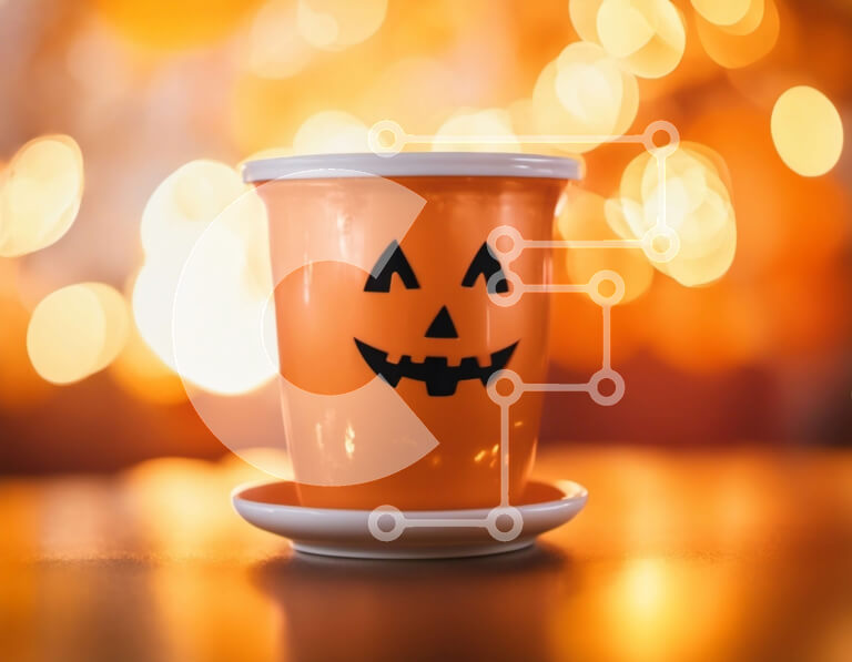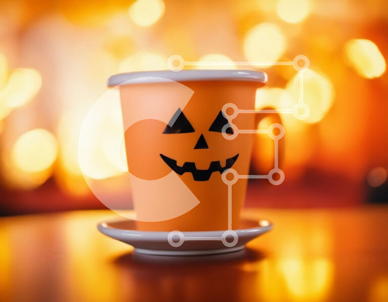 Intra Συλλεκτικό Ξύλινο Παζλ Plywood 4mm - Πορτοκαλί φλιτζάνι καφέ με σχέδιο κολοκύθας Σε Ξύλινο Κουτί - Διαστάσεις: 10x10 cm – 25 κομμάτια