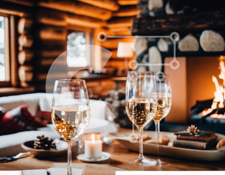 Intra Συλλεκτικό Ξύλινο Παζλ Plywood 4mm - Ποτήρια κρασιού σε ξύλινο τραπέζι με φρούτα και τζάκι Σε Ξύλινο Κουτί - Διαστάσεις: 10x10 cm – 25 κομμάτια