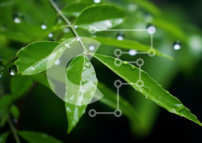 Intra Συλλεκτικό Ξύλινο Παζλ Plywood 4mm - Πράσινα φύλλα με σταγονίδια νερού σε ένα κλαδί Σε Ξύλινο Κουτί - Διαστάσεις: 10x10 cm – 25 κομμάτια