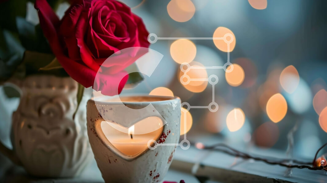 Intra Συλλεκτικό Ξύλινο Παζλ Plywood 4mm - Ρομαντική νεκρή φύση με κόκκινο τριαντάφυλλο, κερί και κύπελλο σε σχήμα καρδιάς Σε Ξύλινο Κουτί - Διαστάσεις: 10x10 cm – 25 κομμάτια