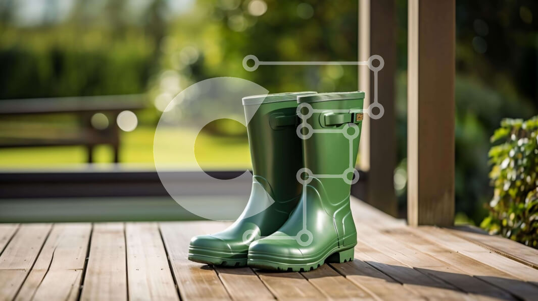 Intra Συλλεκτικό Ξύλινο Παζλ Plywood 4mm - Πράσινες μπότες βροχής σε ξύλινο κατάστρωμα Σε Ξύλινο Κουτί - Διαστάσεις: 10x10 cm – 25 κομμάτια