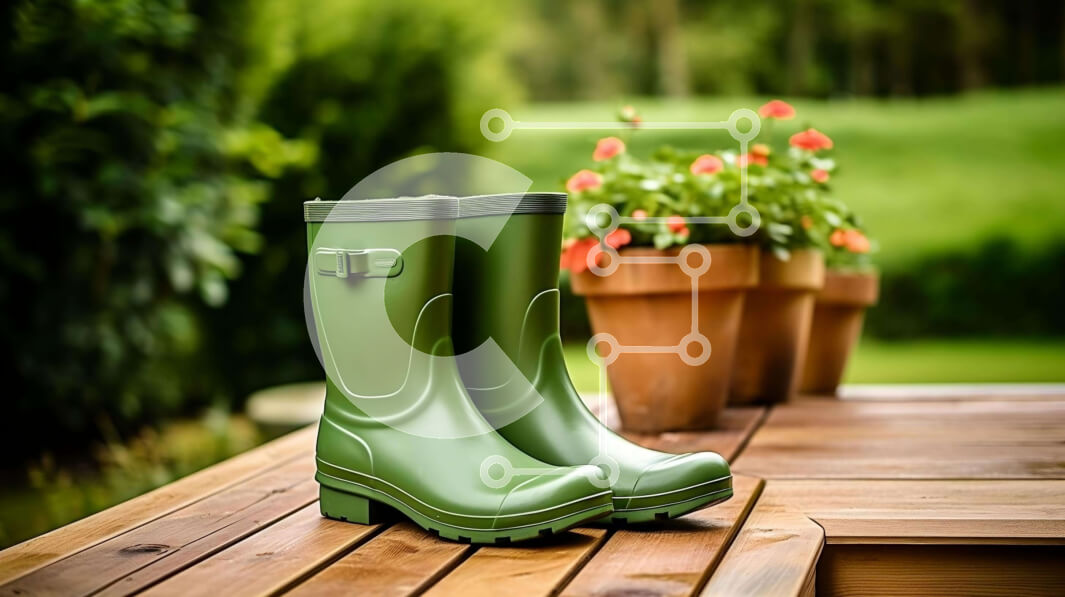 Intra Συλλεκτικό Ξύλινο Παζλ Plywood 4mm - Πράσινες μπότες βροχής και φυτά σε γλάστρες σε ξύλινο τραπέζι Σε Ξύλινο Κουτί - Διαστάσεις: 10x10 cm – 25 κομμάτια