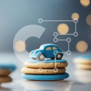 Intra Συλλεκτικό Ξύλινο Παζλ Plywood 4mm - Στοίβα μπλε μπισκότα με ένα μπλε αυτοκίνητο στην κορυφή Σε Ξύλινο Κουτί - Διαστάσεις: 10x10 cm – 25 κομμάτια